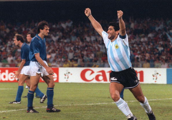 בחצי הגמר, קרא מראדונה לאוהדי נאפולי לתמוך בנבחרת ארגנטינה ולא בנבחרת איטליה בשל הקיפוח של תושבי העיר, צעד שגרם למחלוקת קשה בנאפולי ועורר את זעמם של תושבי צפון איטליה. שחקני נאפולי עלו עם החולצה 10, האוהדים הקיפו את האצטדיון באבוקות. דייגו מראדונה בנאפולי | mandatory credit: לוסיה ריספולי הייתה עוזרת הבית והטבחית של מראדונה בשנותיו בנאפולי. לעיני 75 אלף צופים באיצטדיון סן פאולו, נחת מראדונה מהשמים ושינה את ההיסטוריה עבור נאפולי צילום: